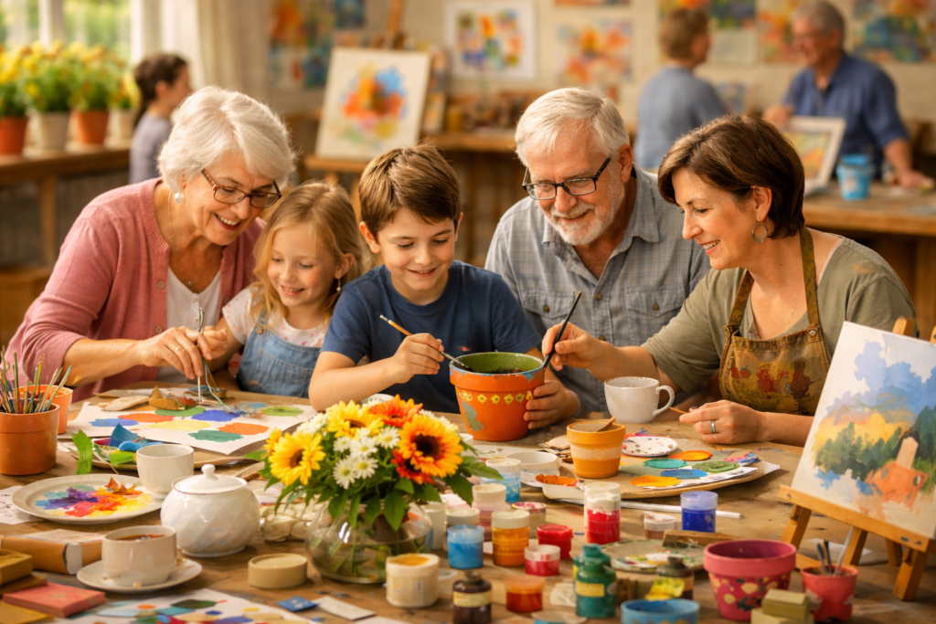 In der gemütlichen Atmosphäre der Amsinck-Villa laden wir euch ein, kreativ zu werden, neue Menschen kennenzulernen und gemeinsam Zeit zu verbringen. Die Kunst-Workshops verbinden Generationen, Nachbarschaft und unterschiedliche Lebenswelten – offen, ungezwungen und ohne Vorkenntnisse. Hier entstehen Begegnungen, Gespräche und gemeinsame Momente rund um Farbe, Formen und Ideen.